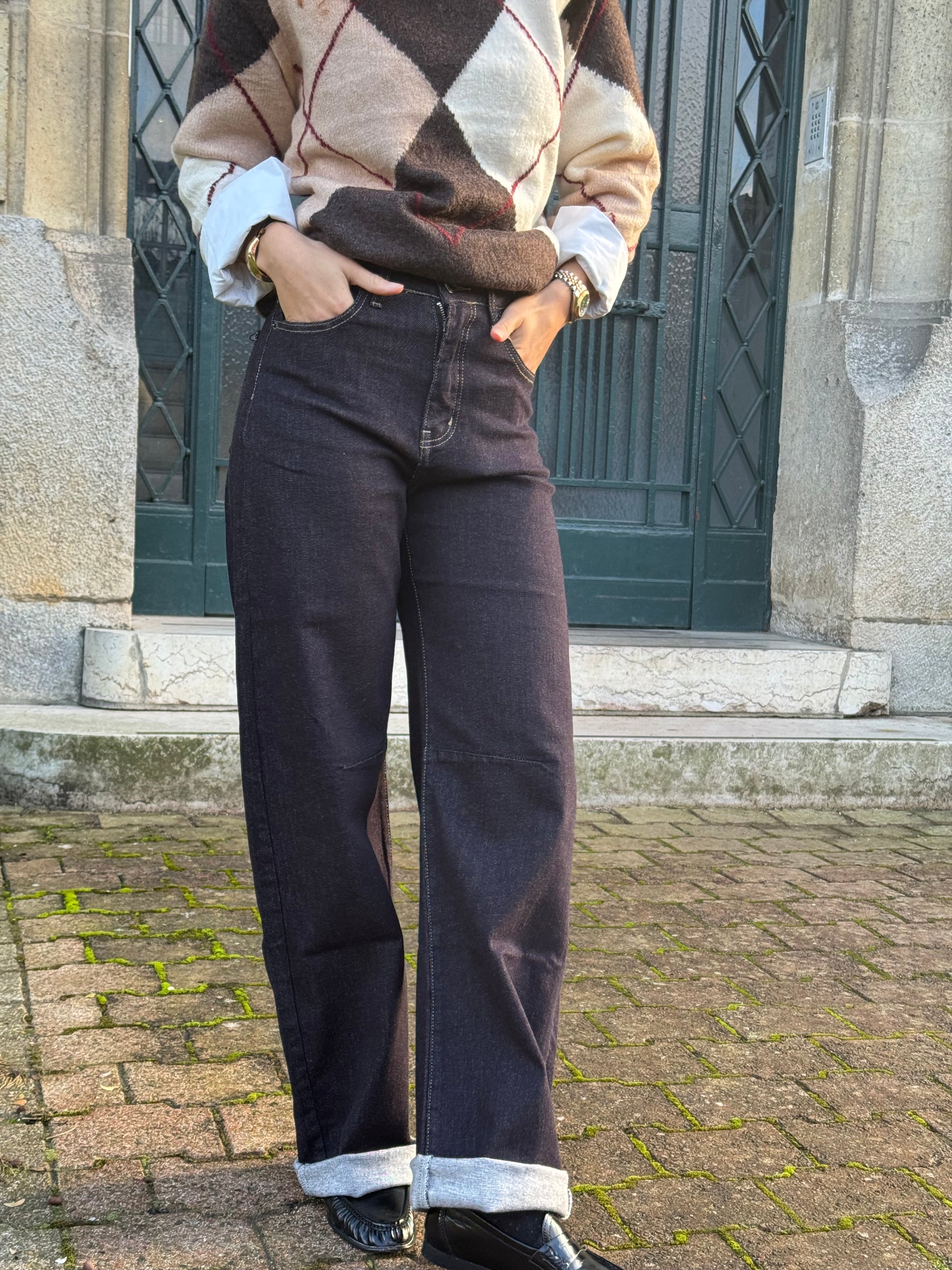 Le Jean Barel Brut se porte aussi bien avec un pull en maille pour un esprit casual chic qu’avec une veste pour une allure plus structurée.